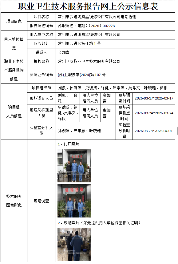 常州卫安职业卫生技术服务有限公司