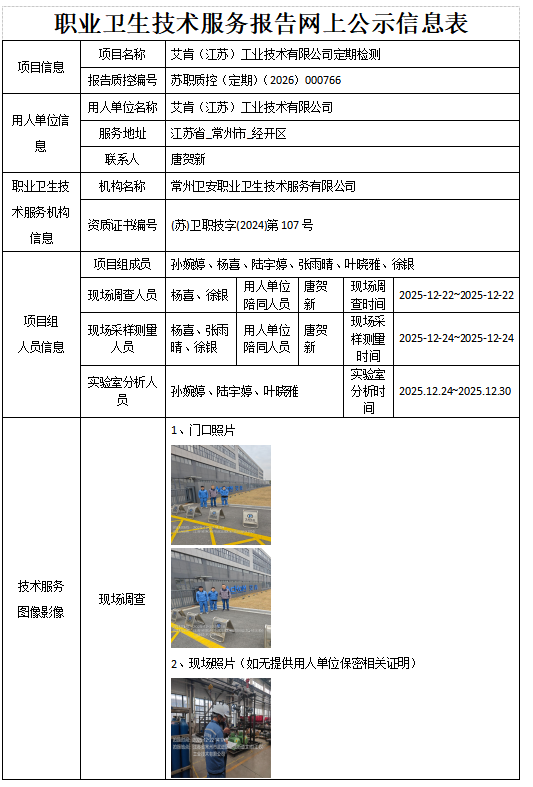常州卫安职业卫生技术服务有限公司