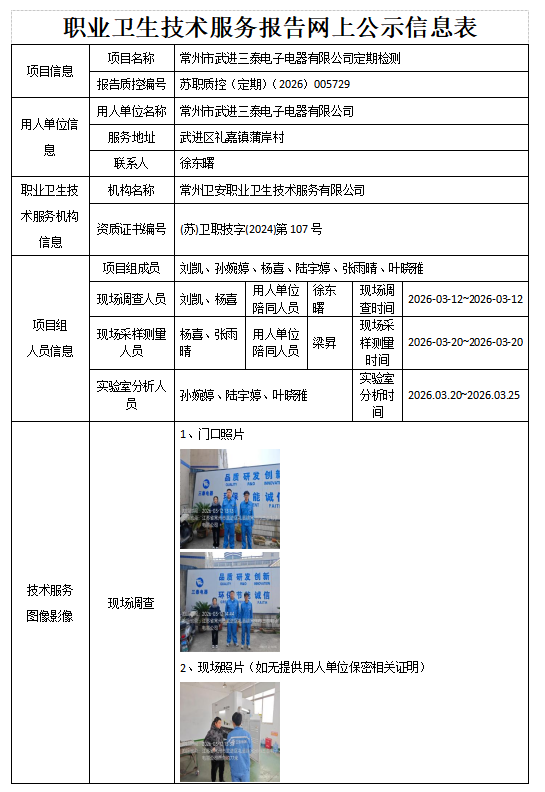 下一篇:WAJC20260040常州东源旅游用品有限公司定期检测网上信息公开表