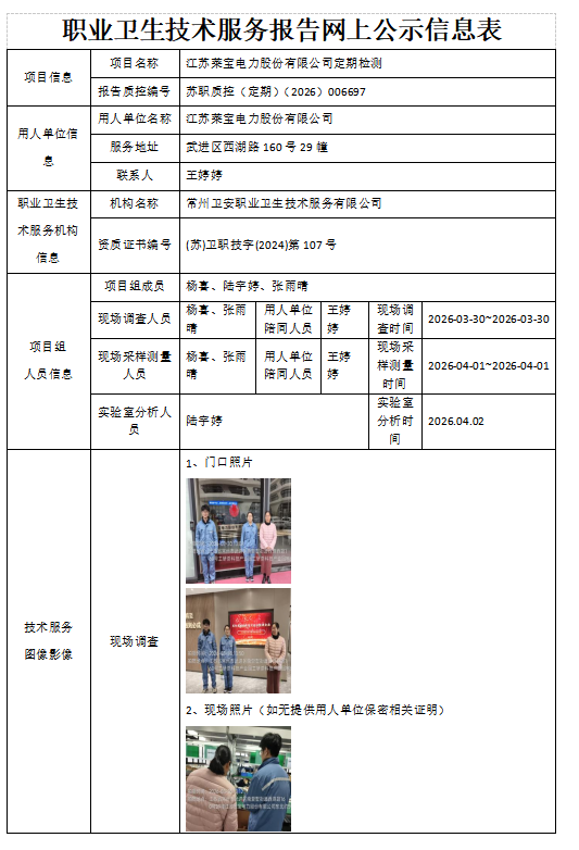 下一篇:WAJC20260063常州市琥顺铝业有限公司定期检测网上信息公开表