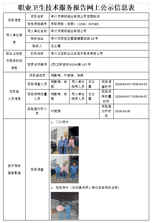 常州卫安职业卫生技术服务有限公司