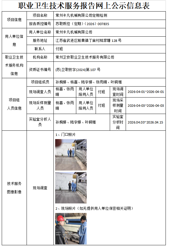 常州卫安职业卫生技术服务有限公司